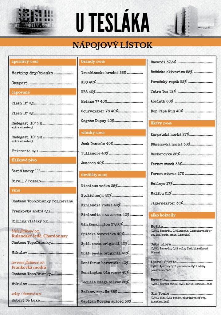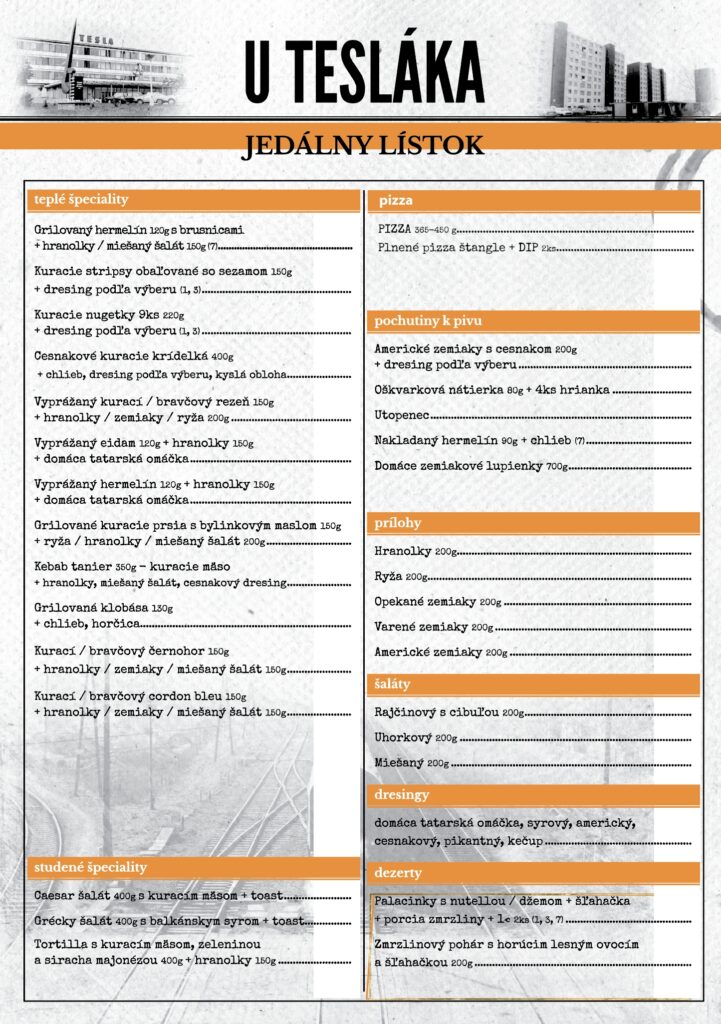 • Jedálny/Nápojový lístok